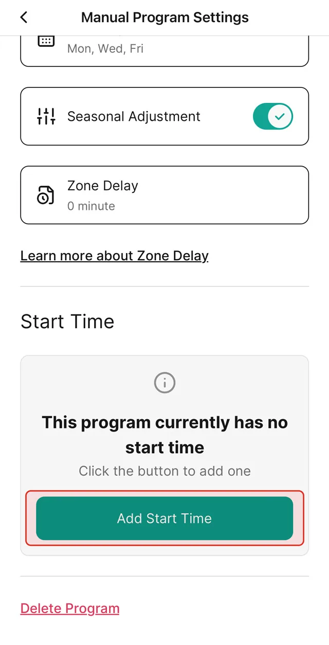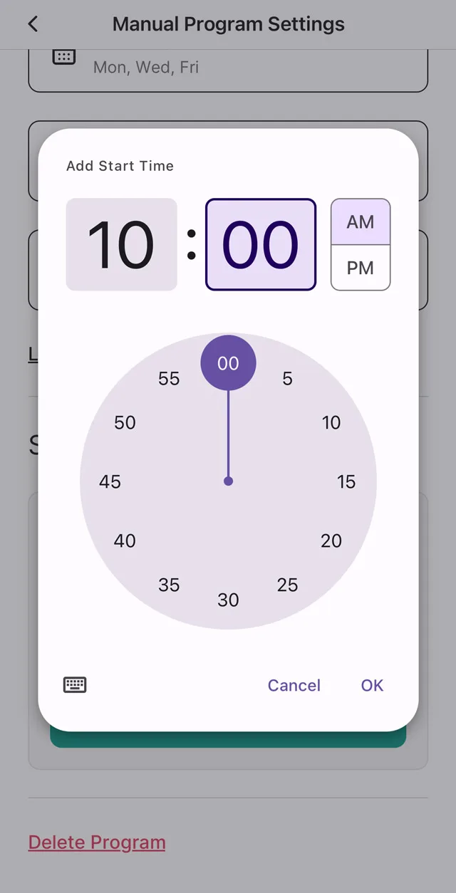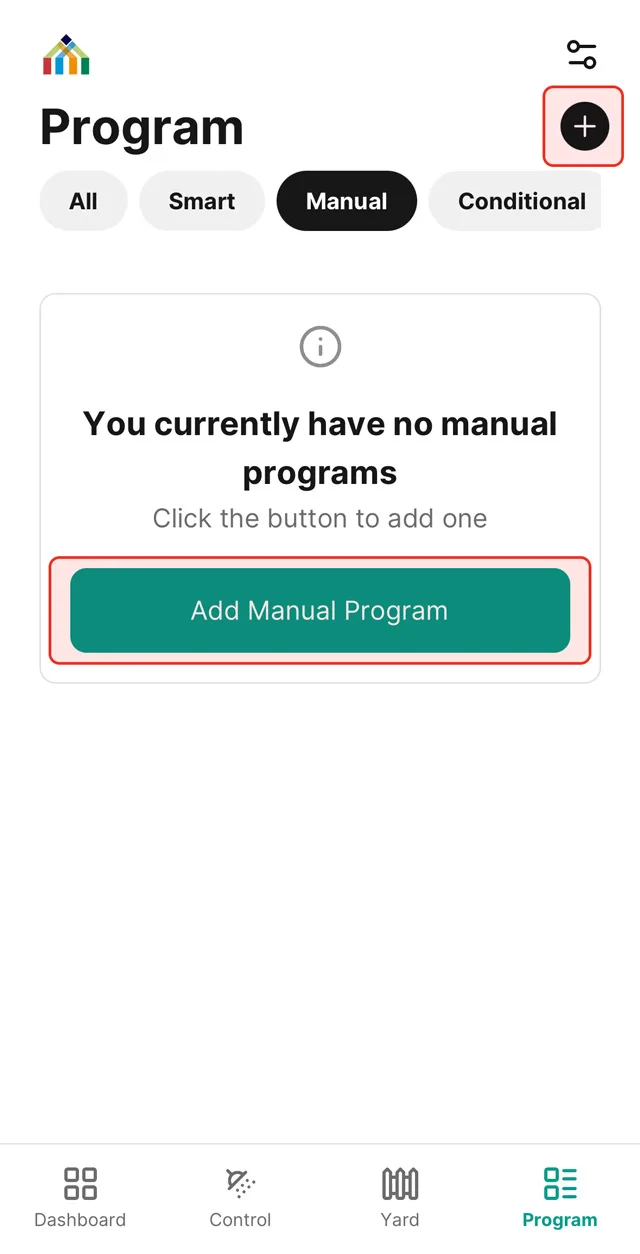 Click the “Manual” tab, then “Add New Manual Program” button to create a new Manual Program.