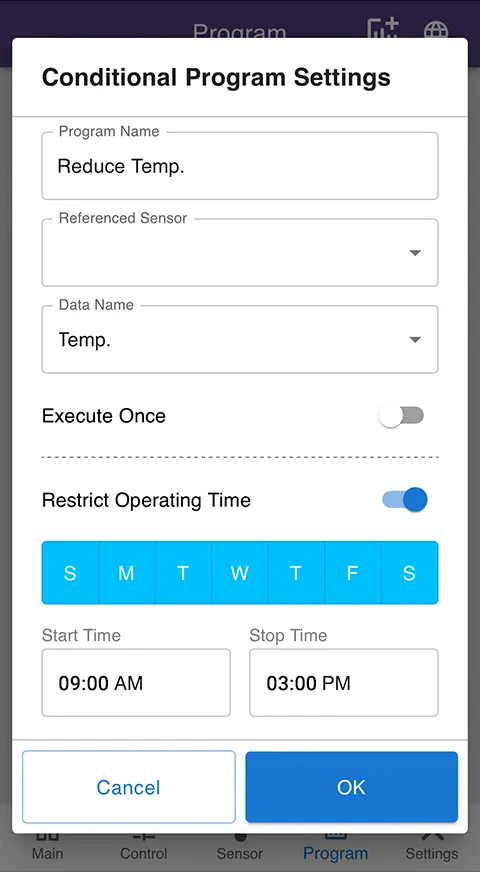 We offer various scheduling options, including Quick Control and Quick Program to activate stations immediately, Manual Program to activate stations based on set dates and times, and Conditional Program to create automated routines for different scenarios with corresponding sensors.