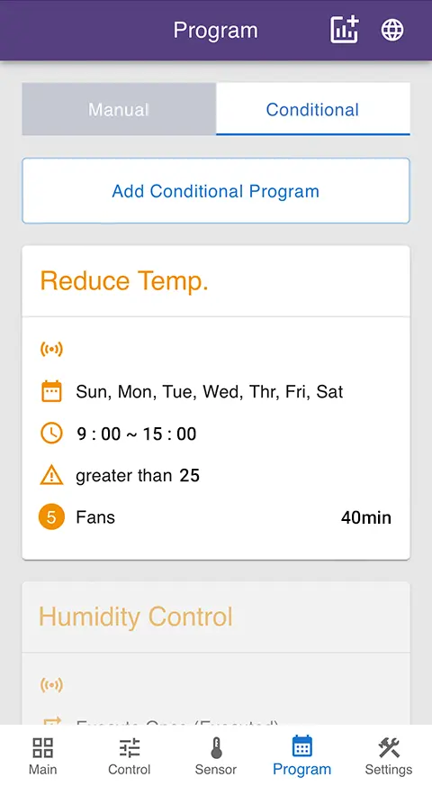 Daily 09:00~15:00,temperature higher than 25°C → Turn on the fan for 40 minutes